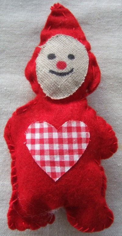 - Rød filt ( evt andre farger/stoffrester til dekorasjon)